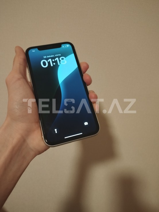 Telefon tam işləkdir, iCloud mənim hesabımdan açıqdır, batareya sağlamlığı 72%.