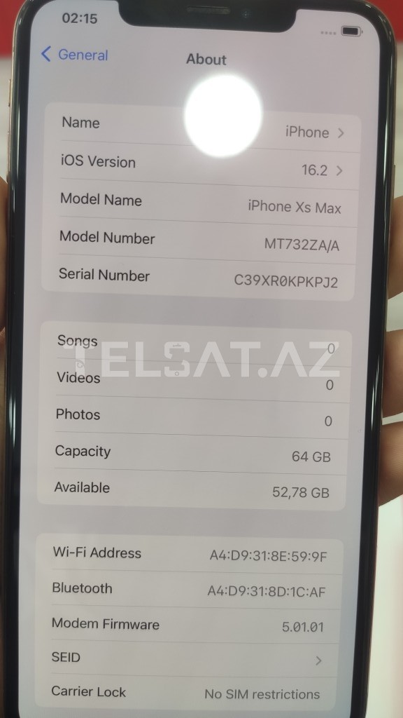 | Model | iPhone XS Max |