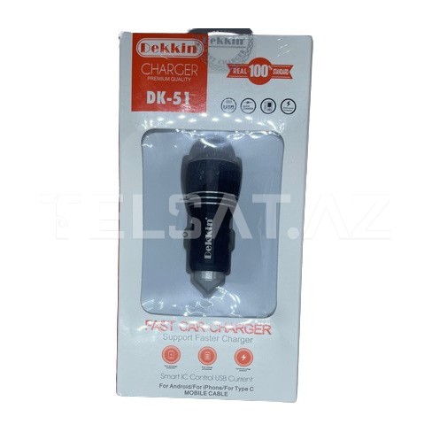 Dekkin 2USB DK-51 Qara Avtomobil Şarj Cihazı: